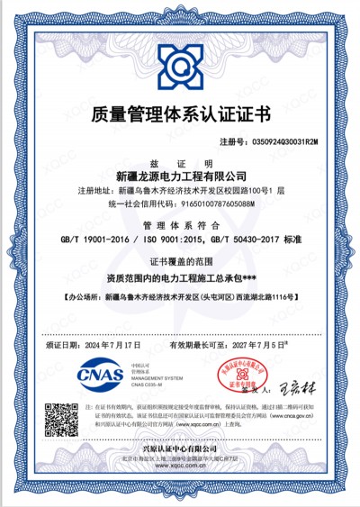 質(zhì)量管理體系認(rèn)證證書